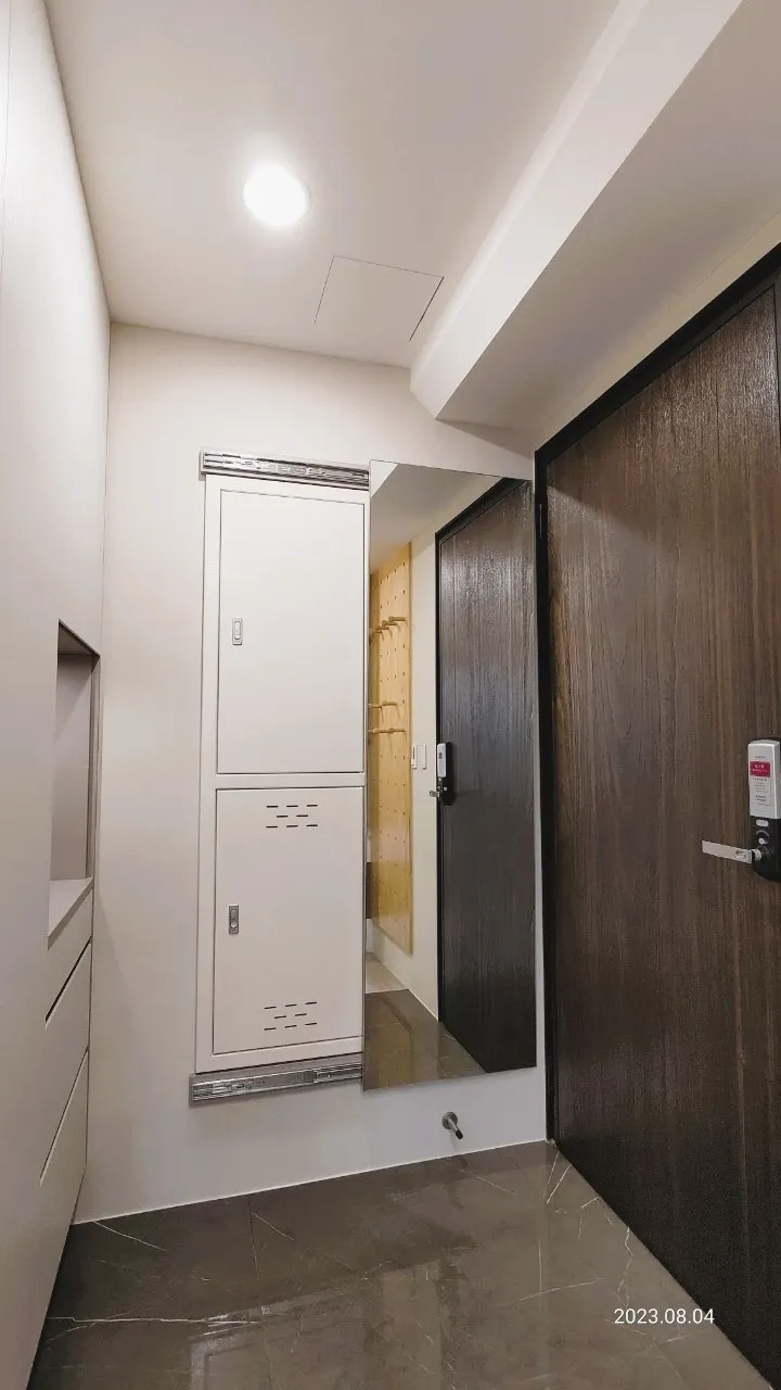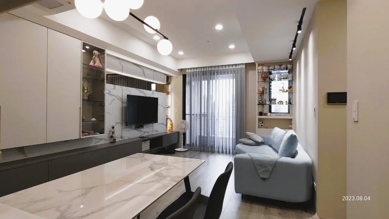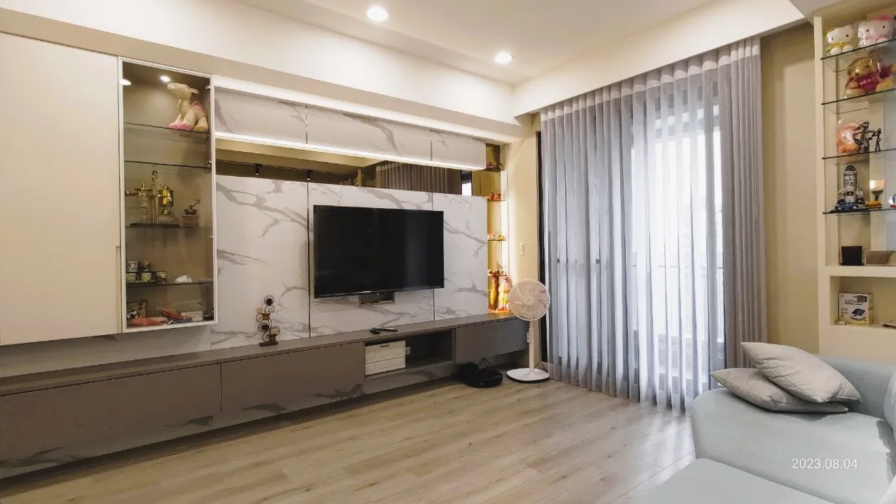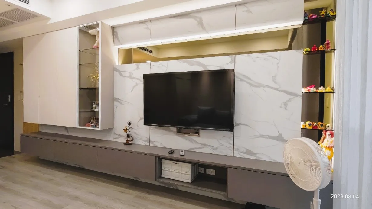 本案業主為獨立單身女性 有收納展示品的需求 大面積牆壁跳色選擇暖色系加上織紋系統櫃讓空間看起來溫馨舒適又有功能性 因坪數較小多處利用了燈光、鏡面以及玻璃製造更大的空間感 鏡面選用茶鏡感覺更加和諧也能緩和石紋檯面帶來的冰冷感 看了就想立刻搬家入住