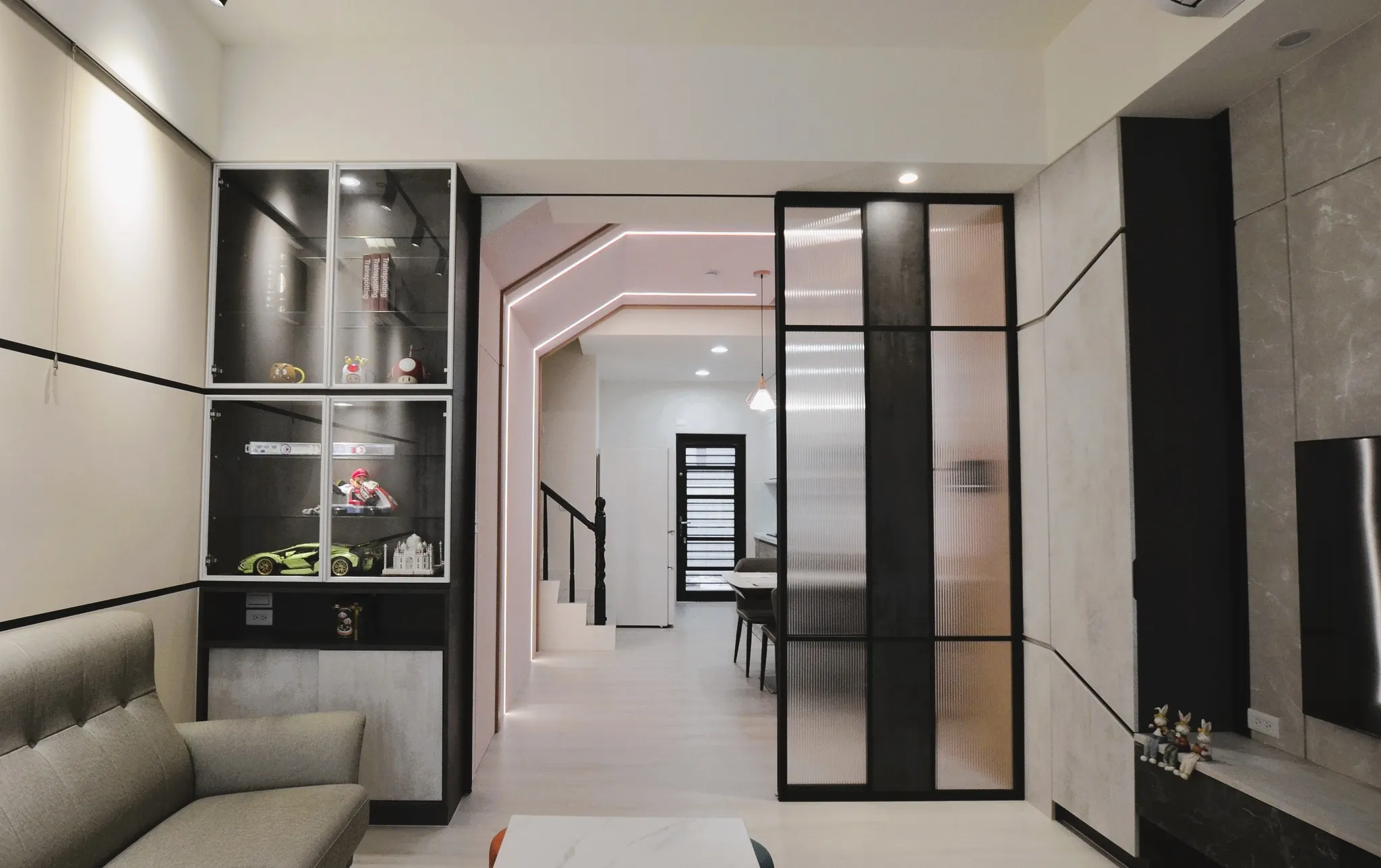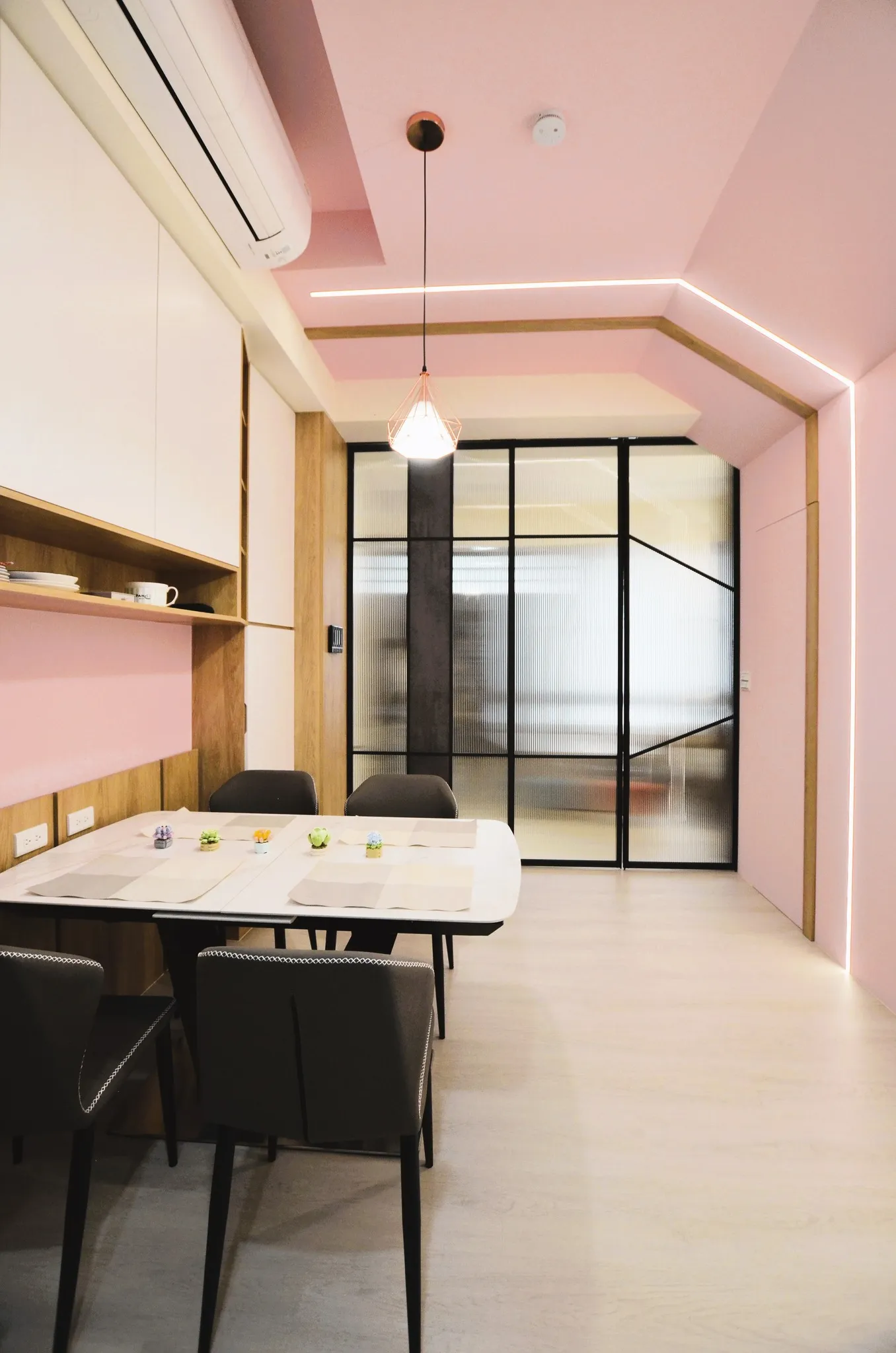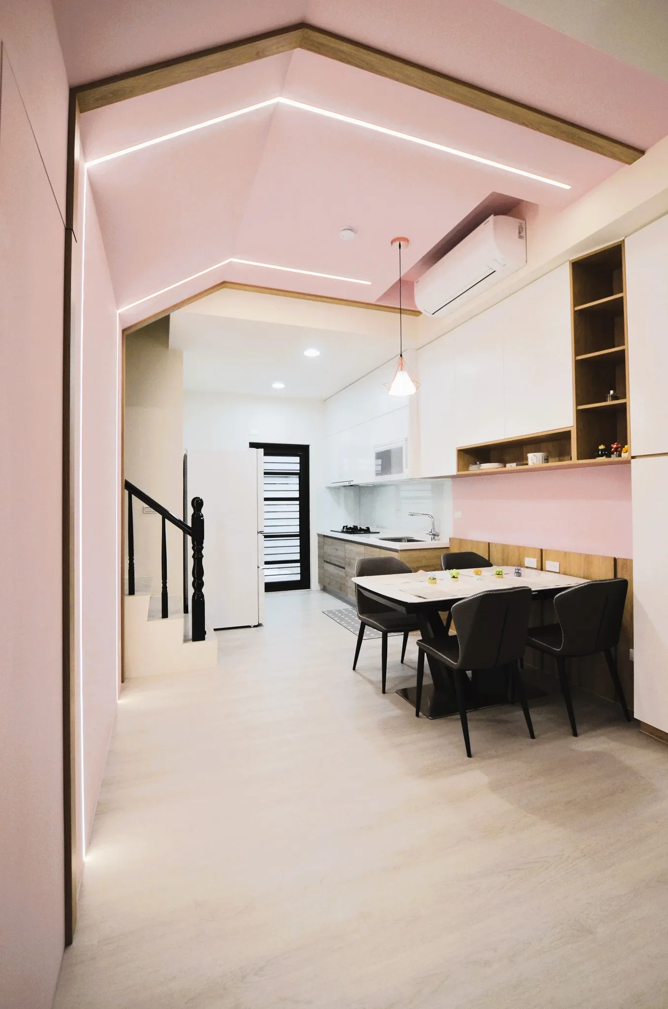 小倆口準備迎接人生的另一個階段,在簡單的生活中,追求著幸福的味道。透天房屋的空間寬敞,可以盡情揮灑創意,打造屬於自己的簡約風格。簡約風格的客廳,以白灰色為主色調,營造出清新明亮的氛圍。粉色調的餐廳以簡潔的線條為主,搭配實用的餐桌椅,營造出溫馨舒適的用餐環境。